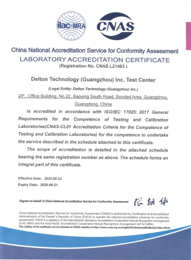 易游网官网检测中心(以下简称“广合科技检测中心”)顺利通过中国合格评定国家认可委员会(“China National Accreditation Service for Conformity Assessment”, CNAS)的认可,成功获得CNAS认可标识和认可证书(注册号:CNAS L21463),标志着我司在检测技术能力和管理水平上迈上了新的台阶。